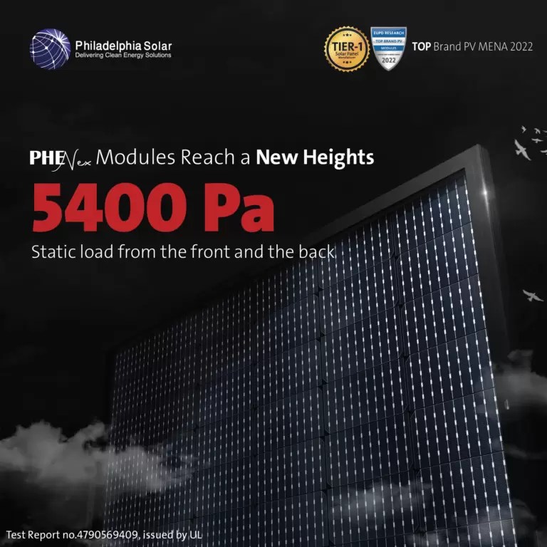 Static mechanical load for Phenix module has shown its ability to withstand 5400 pa from each side; front and back. With a power degradation less than 0.4% of its original power.